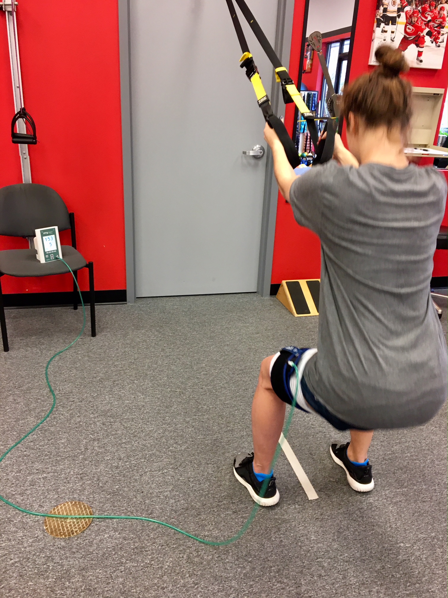 You can see my client above (Division 1 college soccer player) doing a TRX double leg squat following her ACL reconstruction. I have also seen very good results in younger clients with patella tendinitis that have not responded to other methods for pain relief. Consider the following case study: