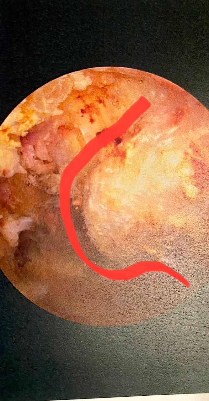 You can see from the bone spur outlined in red above that my tear was an caused by repetitive micro trauma over time. Eventually, the tendon became tattered and torn. All the years of weight training probably contributed to some of this, as well as my type 2 acromion. I ended up with three total anchors and a suture bridge repair.